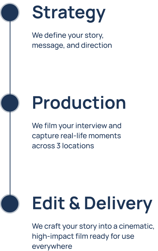 A cinematic mini documentary designed to tell your story with clarity, depth, and intention. We capture